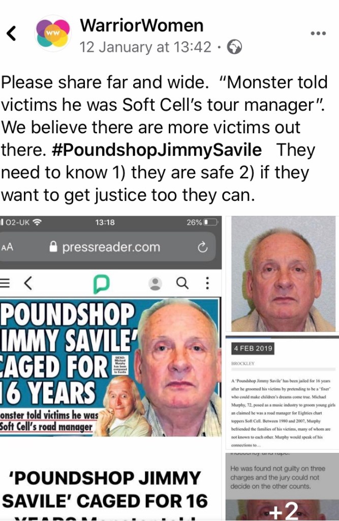 If you were a victim of child sexual abuse by Mike Murphy or anyone else you can get justice how ever long ago it was. For us it was 35 years plus. The police WILL believe you, it is not too late. You don’t have to see him, ever. It was hard. The hardest thing I ever did. But I never regretted it once. I had to try everything I could. Whatever happened I hadn’t kept his secret. I will never keep his secret ever again.